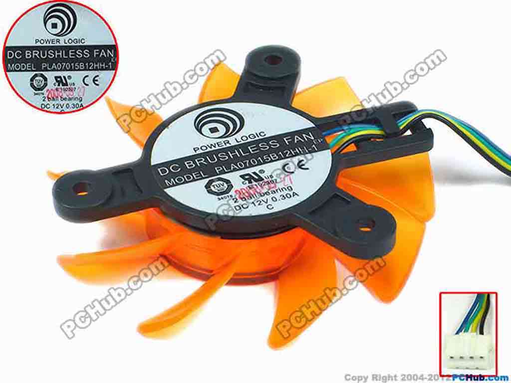 Power Logic PLA07015B12HH-1 Server - Frameless / GPU Fan 12V 0.30A, W80x4x4, D65x12, Orange