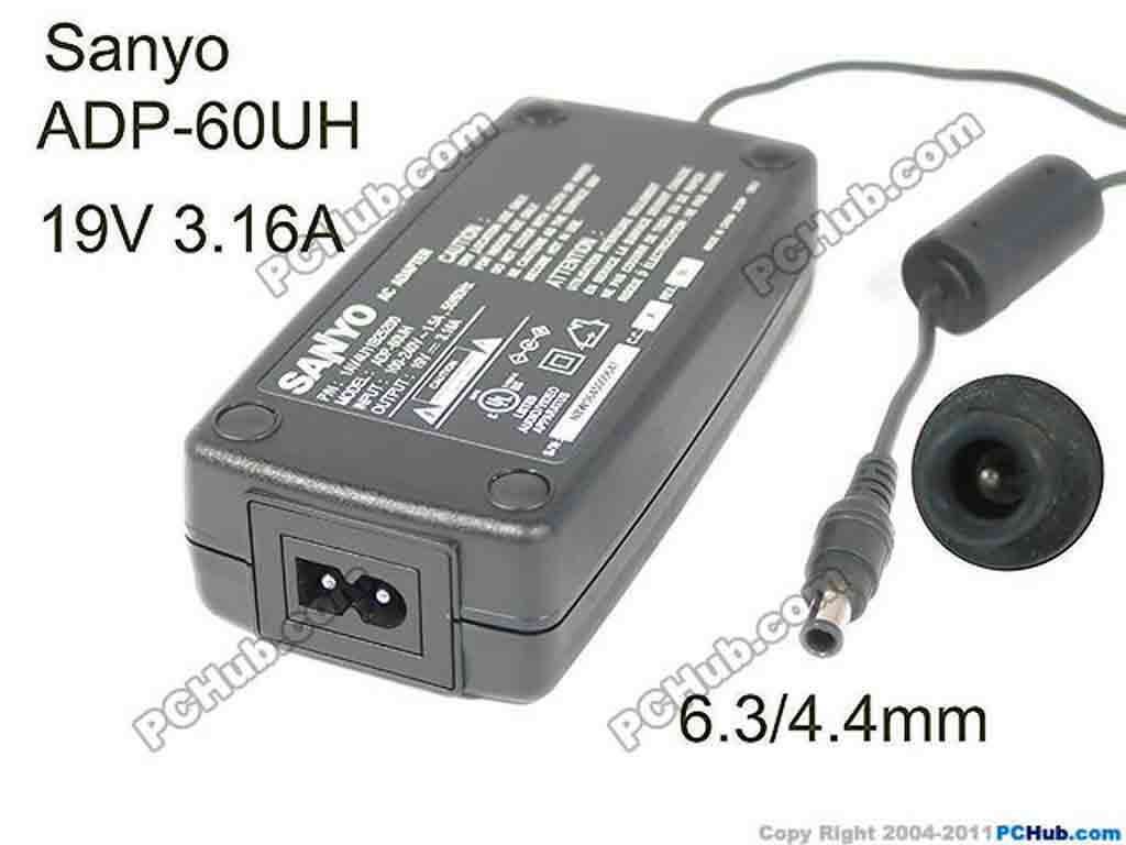 Sanyo AC Adapter (Sanyo) AC Adapter- Laptop 19V 3.16A, Barrel 6.3/4.4mm With Pin, 2-Prong