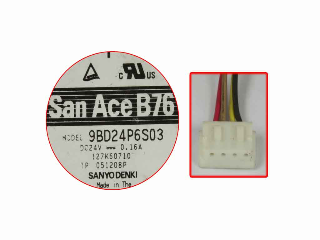Sanyo Denki 9BD24P6S03 Server - Blower Fan bw75x70x20mm, w50x4x4, 24V 0.16A
