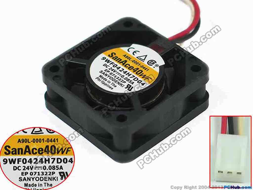 Sanyo Denki 9WF0424H7D04 Server - Square Fan sq40x40x15mm, w30x3x3, 24V 0.085A