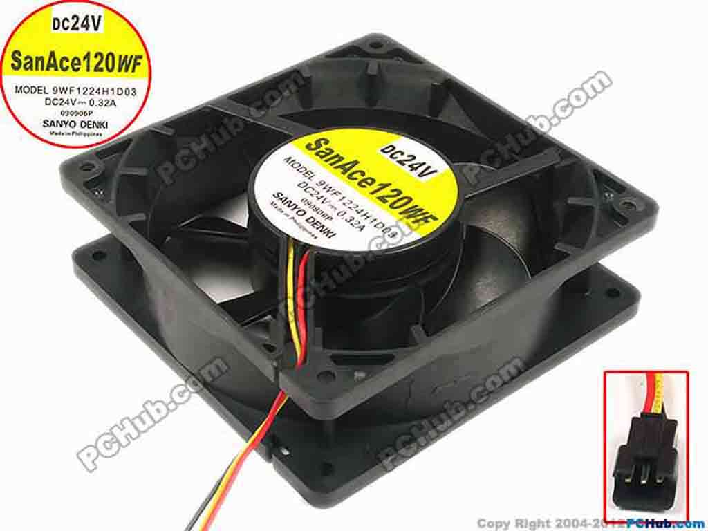 Sanyo Denki 9WF1224H1D03 Server - Square Fan sq120x120x38, w60x3x3, 24V 0.32A