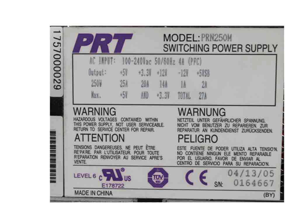 PRT PRN250M Server - Power Supply