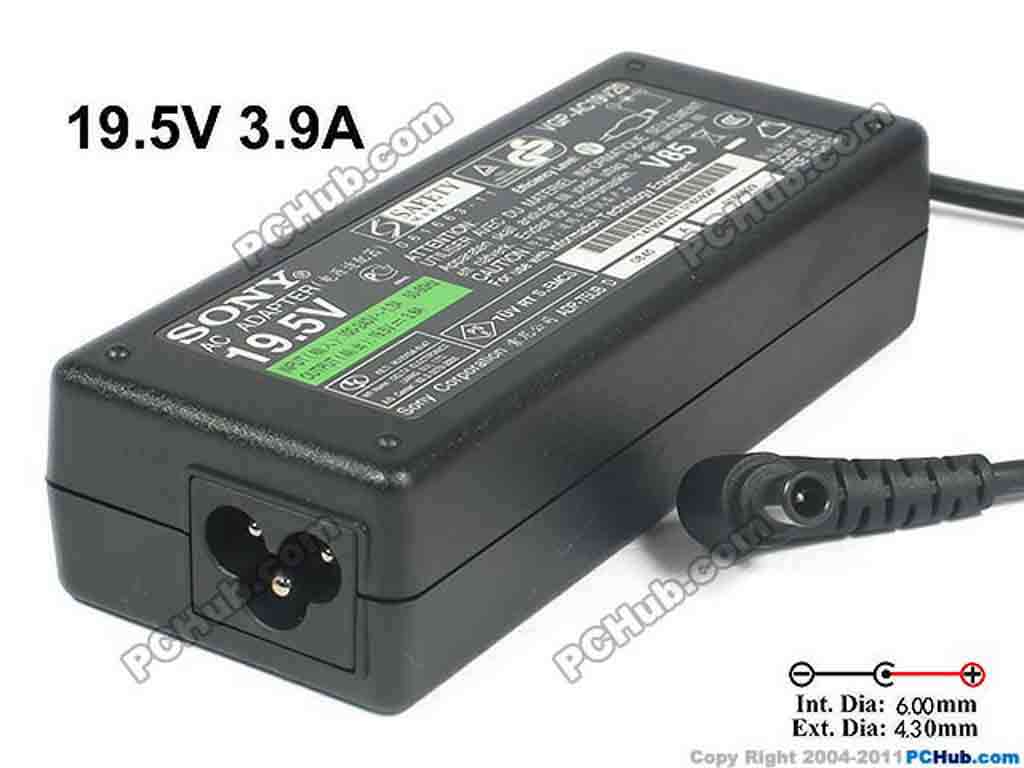 19.5V 3.9A, Barrel 6.0mm/4.3, With Pin, 3-Prong
