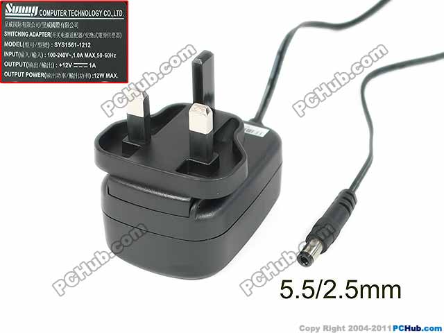 Sunny SYS1561-1212 AC Adapter 5V-12V 12V 1A, Barrel 5.5/2.5mm, UK 3-Pin Plug