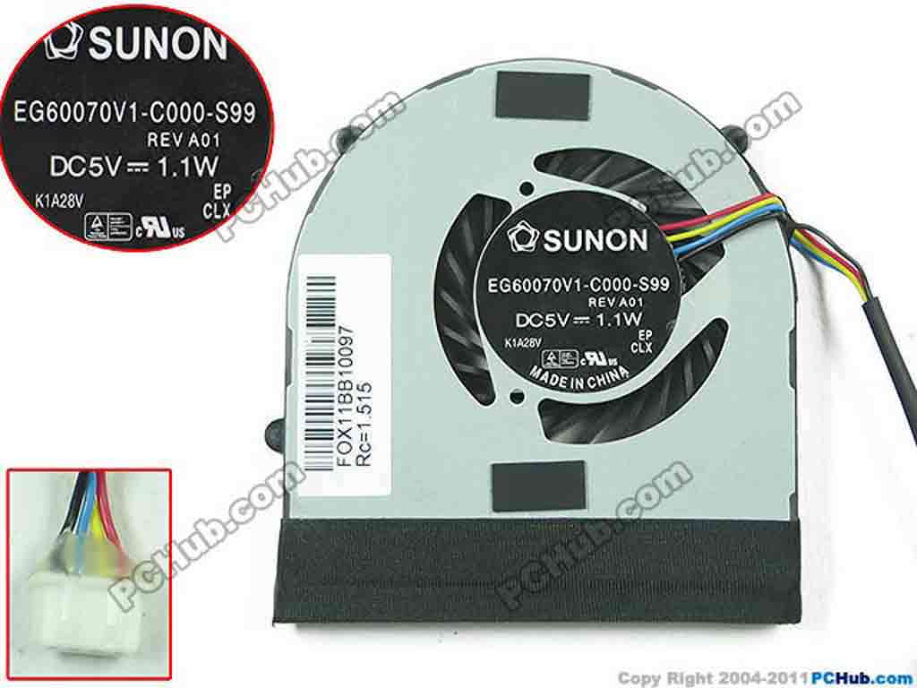 SUNON EG60070V1-C000-S99 Cooling Fan w55x4x4, 5V 1.1W, Bare fan