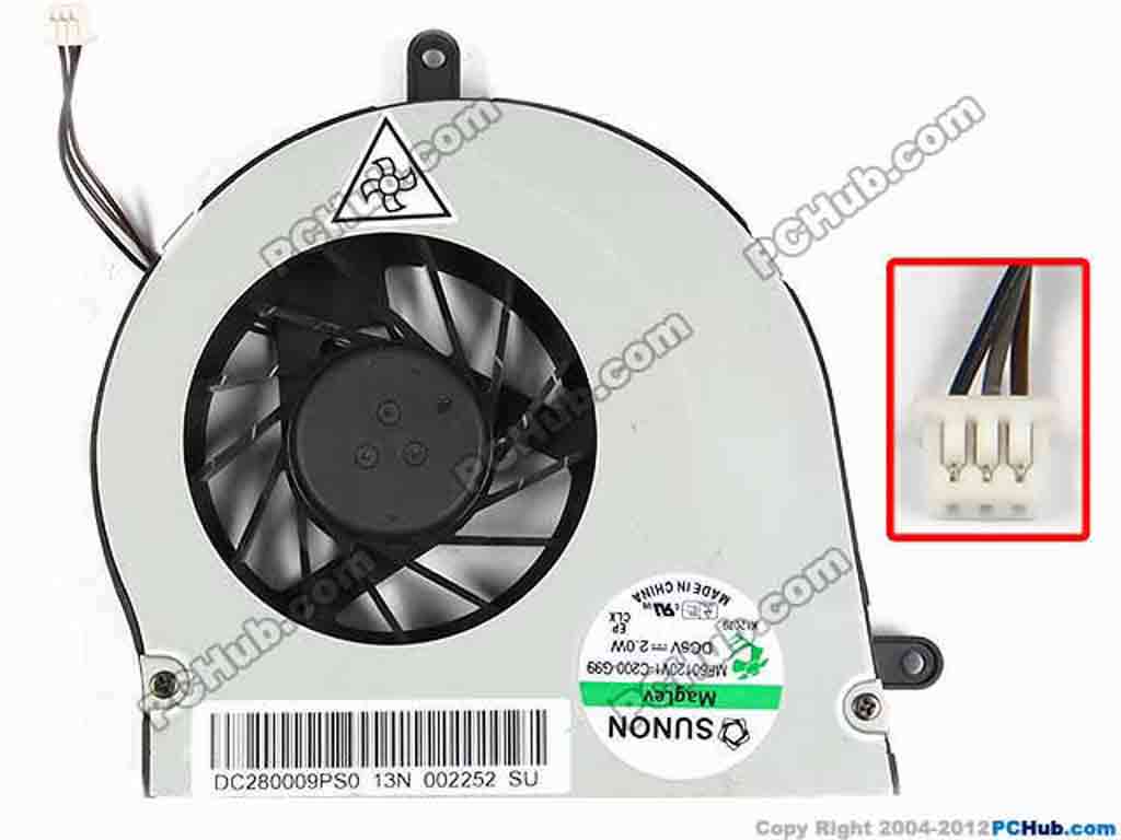SUNON MF60120V1-C200-G99 Cooling Fan DC280009PS0, w30x3x3, 5V 2.0W, Bare, NEW
