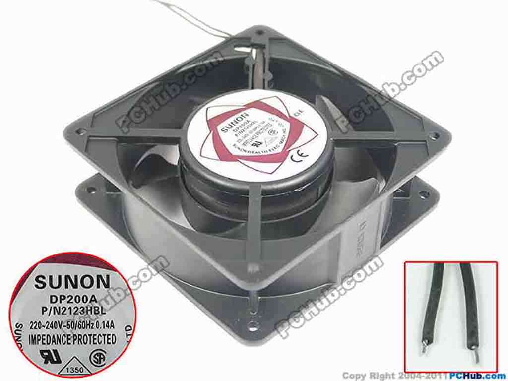 Sunon Wealth DP200A Server - Square Fan 2123HBL, sq120x120x38, 2-wire, 240V 0.14A
