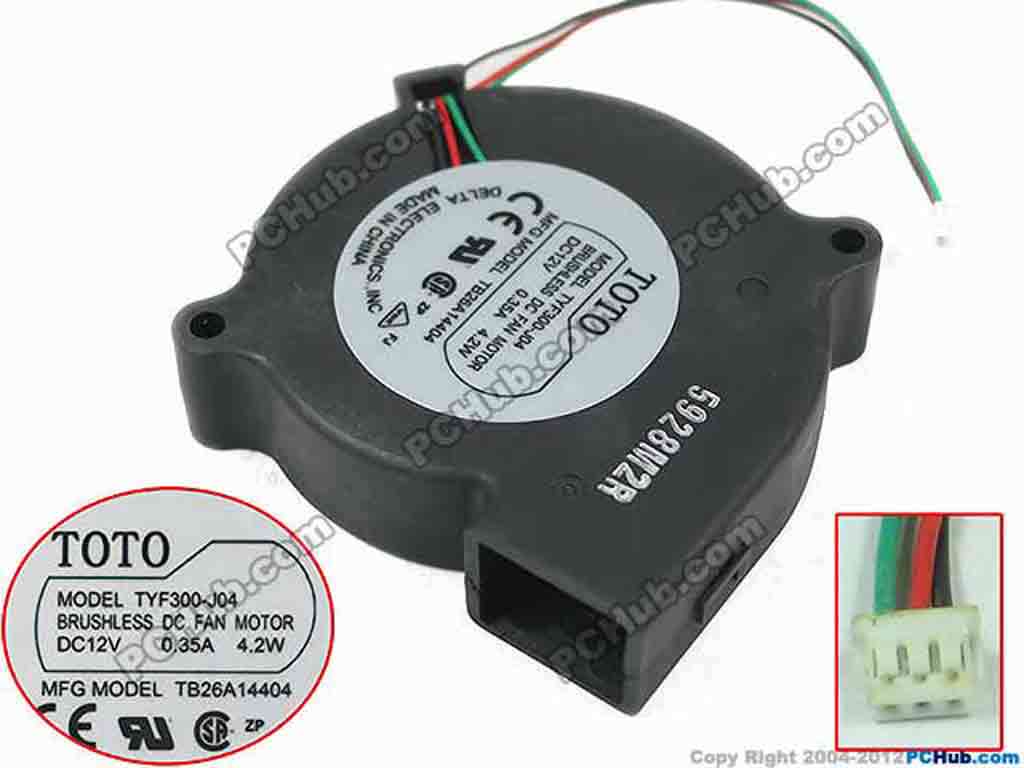 TOTO TYF300-J04 Server - Blower Fan TB26AI4404, sq70x70x20, 3-wire, 12V 0.35A