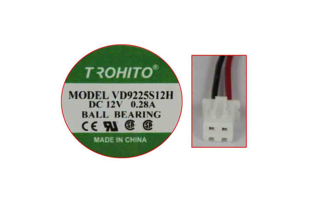 DC 12V 0.28A, 92x92x25mm, 2-Wire
