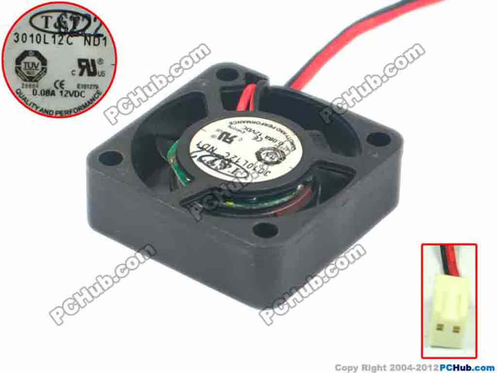 T&T 3010L12C Server - Square Fan sq30x30x10, 2-wire, 12V 0.08A