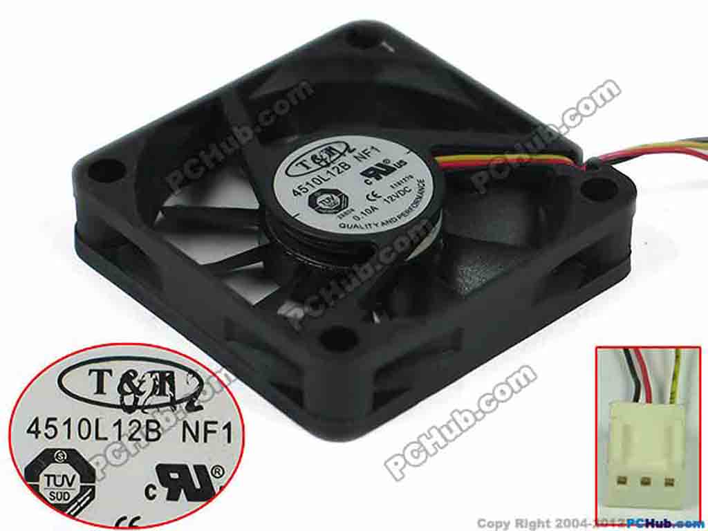 T&T 4510L12B Server - Square Fan DC 12V 0.10A, 40x40x10mm, 4510L12B, NF1, 3-wire