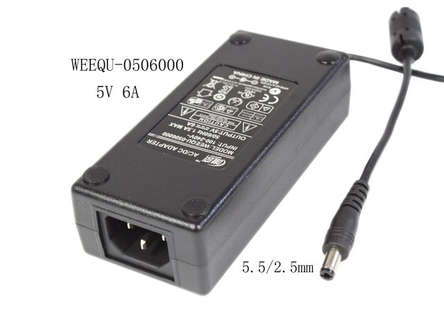 WEEQU WEEQU-0506000 AC Adapter 5V-12V 5V 6A, 5.5/2.5mm, C14, New