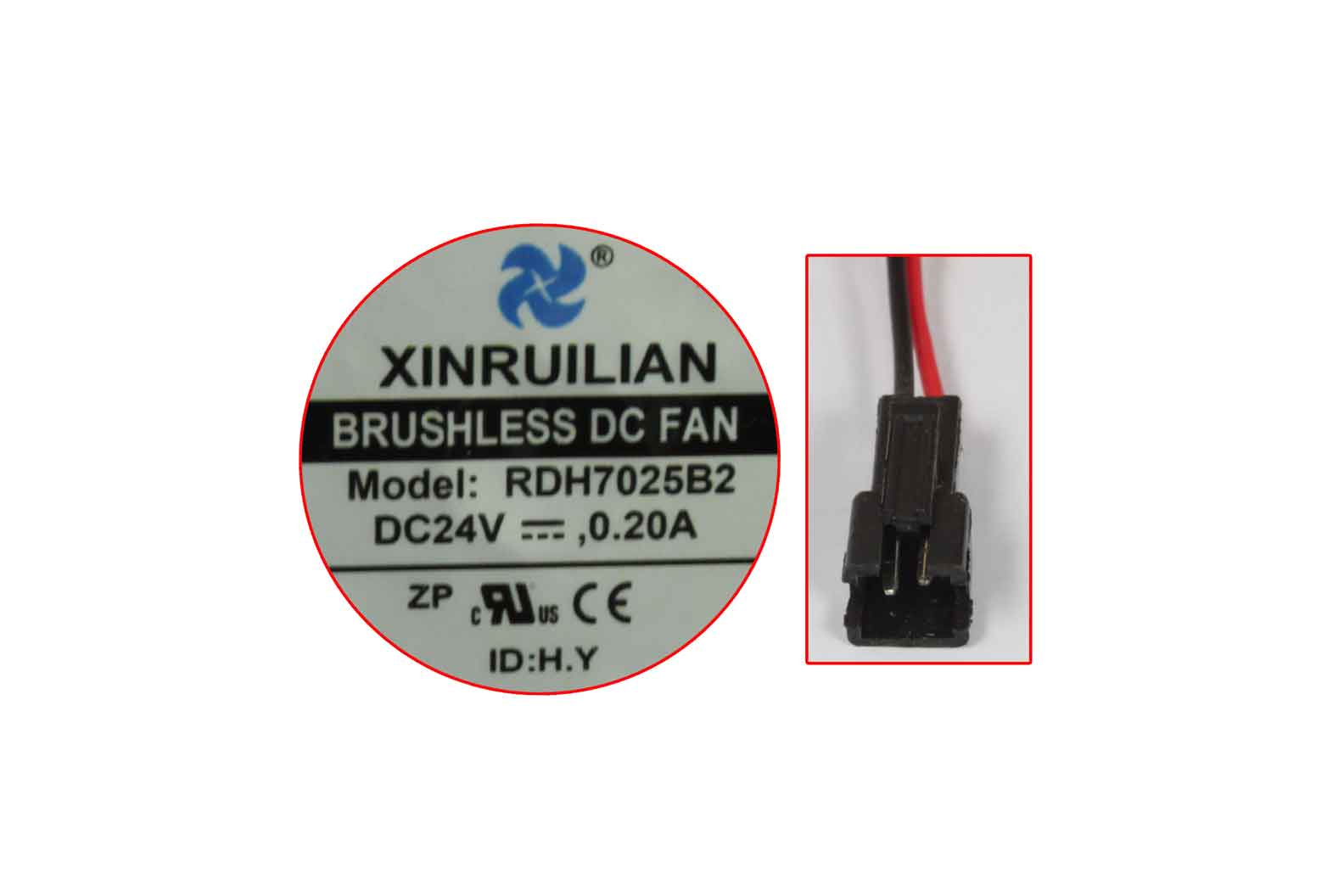 XIFAN / Xinruilian RDH7025B2 Server - Square Fan sq70x70x25, w80x2x2P, DC 24V 0.2A