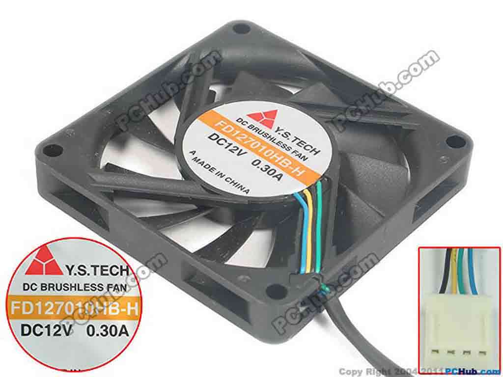 Y.S TECH FD127010HB-H Server - Square Fan sq70x70x10, w130x4x4, 12V 0.30A