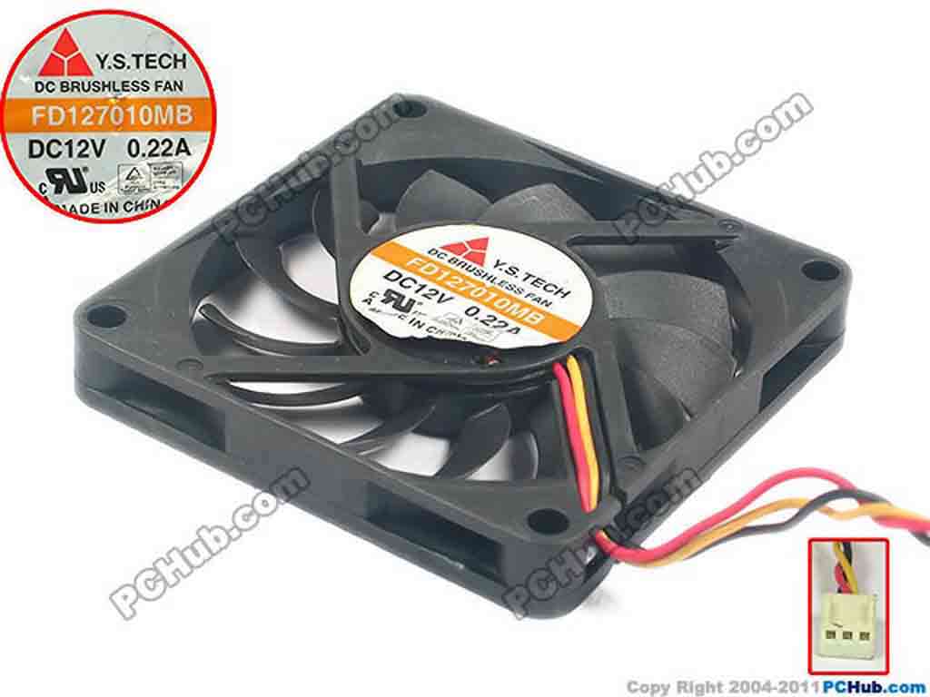 Y.S TECH FD127010MB Server - Square Fan sq70x70x10, w170x3x3, 12V 0.22A
